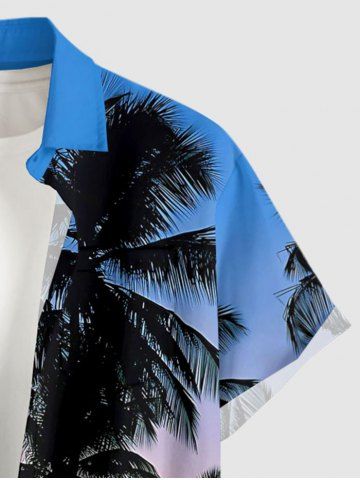 Plus Size Coconut Tree Ombre Colorblock Print Buttons Pocket Hawaii Shirt For Men - Bleu Ciel - Bleu Ciel