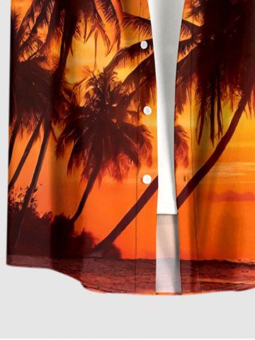 Plus Size Coconut Tree Ombre Dusk Print Hawaii Button Pocket Shirt For Men - Orange Foncé - Xl