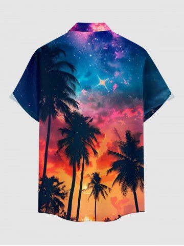 Chemise à Manches Courts> Plus Size Coconut Tree Ombre Galaxy Print Hawaii Button Pocket Shirt For Men