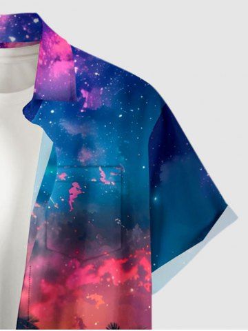 Chemise à Manches Courts> Plus Size Coconut Tree Ombre Galaxy Print Hawaii Button Pocket Shirt For Men