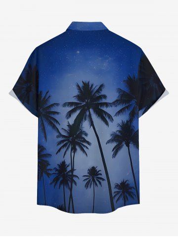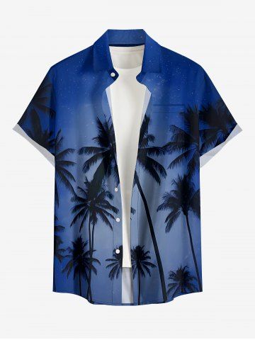 Plus Size Coconut Tree Ombre Night Print Hawaii Button Pocket Shirt For Men - Bleu Profond - Xl