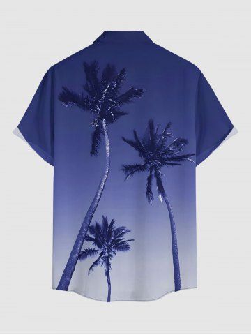Plus Size Coconut Tree Ombre Sky Print Hawaii Button Pocket Shirt For Men - Bleu - Bleu