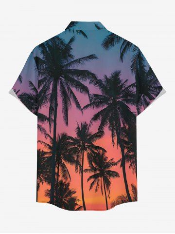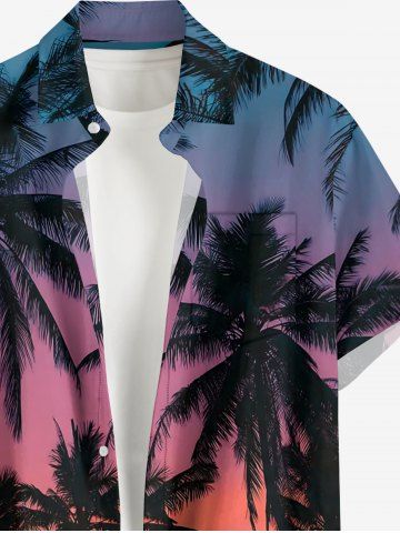Chemise à Manches Courts> Plus Size Coconut Tree Ombre Sky Print Hawaii Button Pocket Shirt For Men