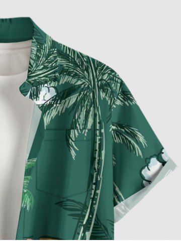 Plus Size Coconut Tree Plant Cloud Print Hawaii Button Pocket Shirt For Men - Vert Profond - 5xl
