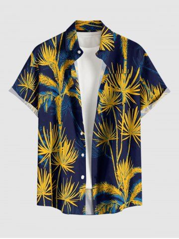 Chemise à Manches Courts > Plus Size Coconut Tree Plant Print Hawaii Button Pocket Shirt For Men