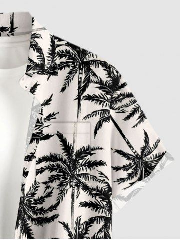 Plus Size Coconut Tree Print Buttons Pocket Hawaii Shirt For Men - Noir - Noir