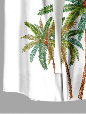 Plus Size Coconut Tree Print Hawaii Button Pocket Shirt For Men - Blanc - Blanc