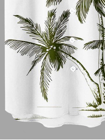 Plus Size Coconut Tree Print Hawaii Button Pocket Shirt For Men - Plant Green - L