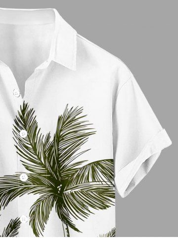 Plus Size Coconut Tree Print Hawaii Button Pocket Shirt For Men - Plant Green - Xl