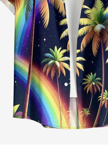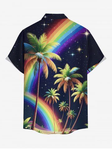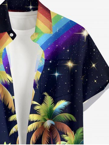 Plus Size Coconut Tree Rainbow Glitter Stars Galaxy Print Hawaii Button Pocket Shirt For Men - Noir - Noir