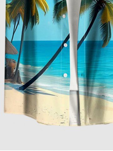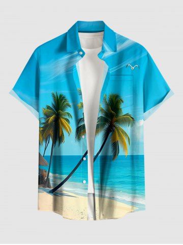 Plus Size Coconut Tree Sea Beach Print Hawaii Button Pocket Shirt For Men - Bleu Ciel - Bleu Ciel
