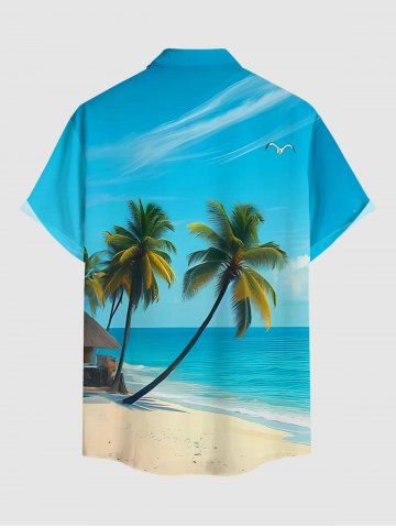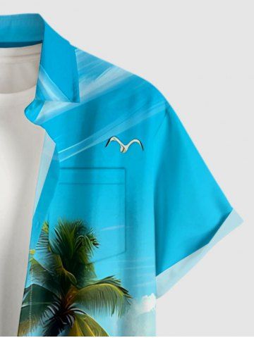 Plus Size Coconut Tree Sea Beach Print Hawaii Button Pocket Shirt For Men - Bleu Ciel - Bleu Ciel