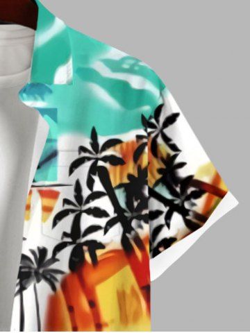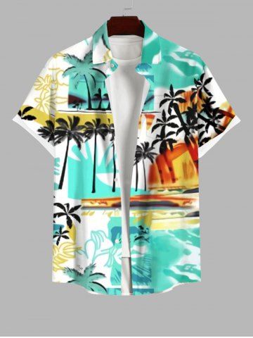 Chemise à Manches Courts> Plus Size Coconut Tree Sea Colorblock Print Hawaii Button Pocket Shirt For Men