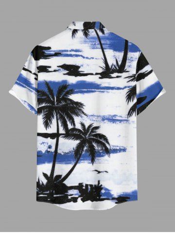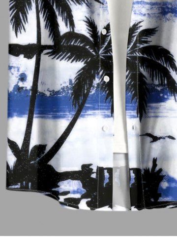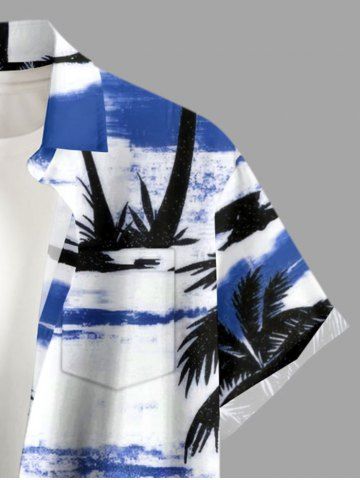 Plus Size Coconut Tree Sea Print Hawaii Button Pocket Shirt For Men - Bleu - Bleu