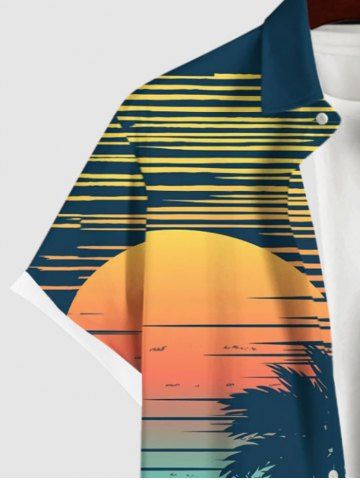 Chemise à Manches Courts > Plus Size Coconut Tree Sea Sun Synthwave Print Buttons Pocket Hawaii Shirt For Men