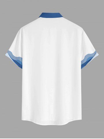 Plus Size Coconut Tree Sea Waves Print Buttons Pocket Hawaii Shirt For Men - Bleu - Bleu