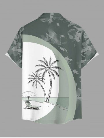 Plus Size Coconut Tree Seascape Umbrella Flowers Colorblock Print Buttons Pocket Hawaii Shirt For Men - Vert Clair - Vert Clair