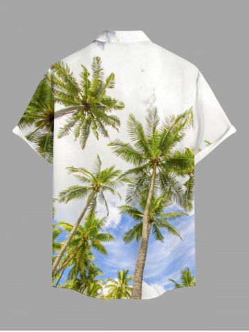 Plus Size Coconut Tree Sky Print Hawaii Button Pocket Shirt For Men - Blanc - Blanc
