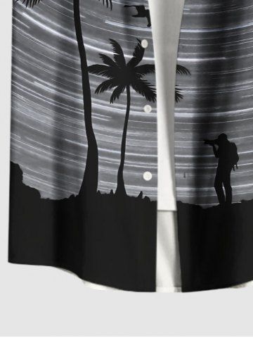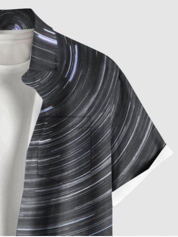Plus Size Coconut Tree Spiral Galaxy Print Hawaii Button Pocket Shirt For Men - Noir - Noir