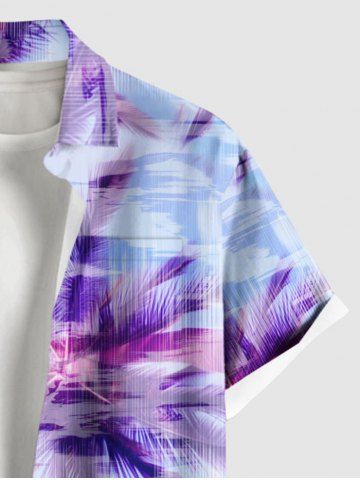 Plus Size Coconut Tree Tie Dye Print Buttons Pocket Hawaii Shirt For Men - Pourpre - Pourpre