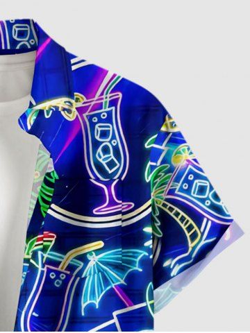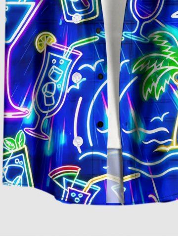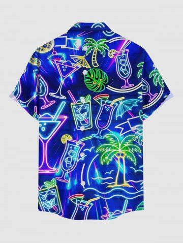 Plus Size Coconut Tree Tropical Leaf Fruit Juice Print Buttons Pocket Hawaii Shirt For Men - Bleu - Bleu