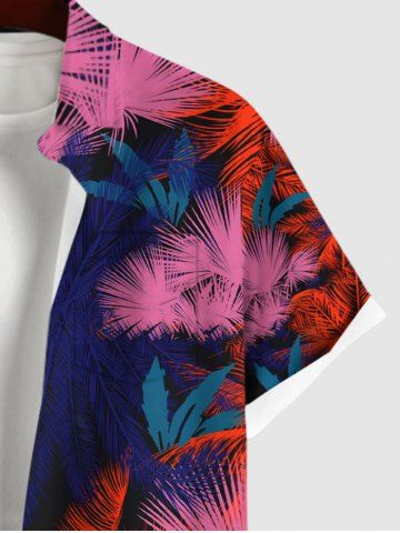 Plus Size Coconut Tree Tropical Leaf Print Hawaii Button Pocket Shirt For Men - Rouge - Rouge