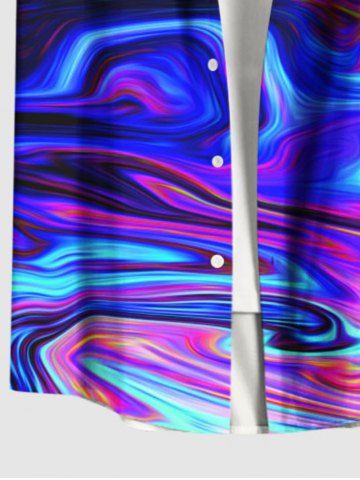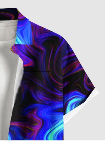 Plus Size Colorful Ocean Currents Print Buttons Pocket Hawaii Shirt For Men - Concorde - 6xl