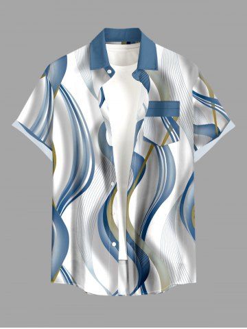 Plus Size Curve Ligh Beam Print Buttons Pocket Hawaii Shirt For Men - Bleu-gris - 4xl