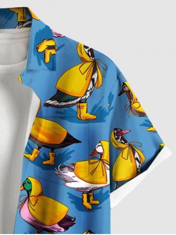 Plus Size Cute Duck Cape Print Hawaii Button Pocket Shirt For Men - Bleu - Bleu