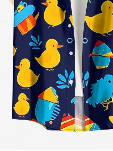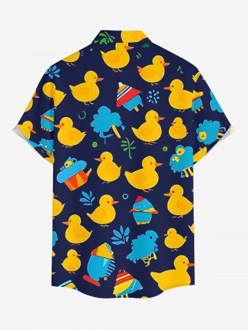 Plus Size Cute Duck Print Hawaii Button Pocket Shirt For Men - Noir - Noir