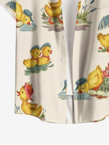 Plus Size Cute Duck Print Hawaii Button Pocket Shirt For Men - Deep Yellow - 6xl