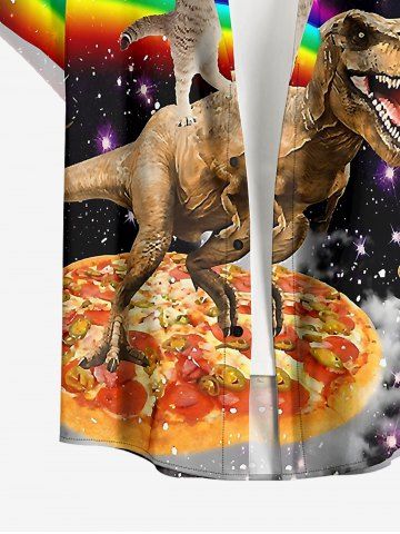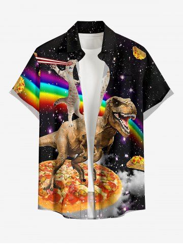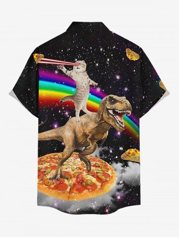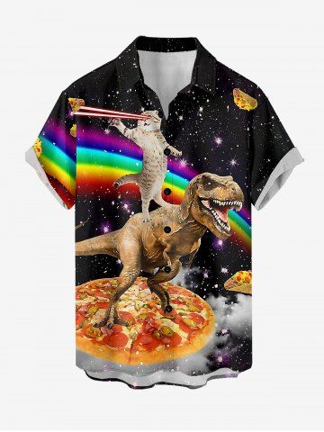 Plus Size Dinosaur Cat Pizza Rainbow Galaxy Print Buttons Pocket Hawaii Shirt For Men - Noir - Noir