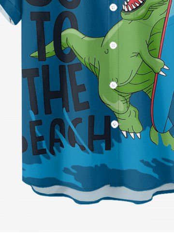Plus Size Dinosaur Letters Sea Waves Print Hawaii Button Pocket Shirt For Men - Paon Bleu - 2xl