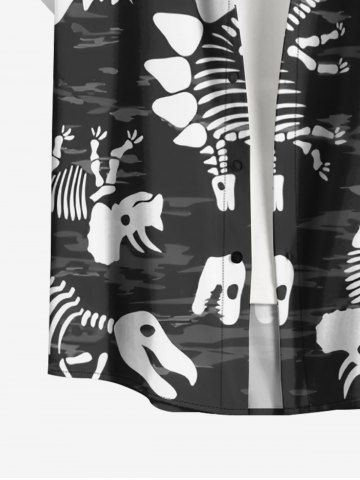 Plus Size Dinosaur Skeleton Print Buttons Pocket Hawaii Shirt For Men - Noir - Noir