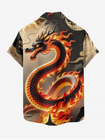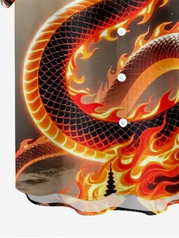 Plus Size Dragon Fire Flame Print Button Pocket Shirt For Men - Café Lumière - 3xl