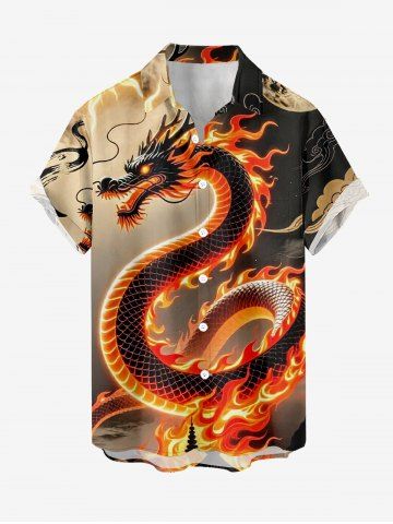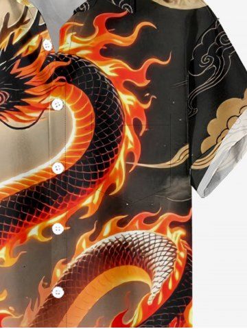 Plus Size Dragon Fire Flame Print Button Pocket Shirt For Men - Café Lumière - 5xl