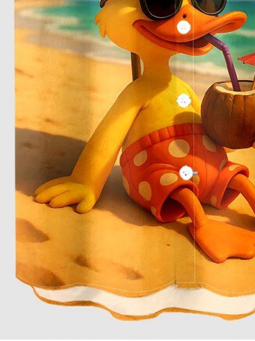 Plus Size Duck Sea Beach Print Hawaii Button Pocket Shirt For Men - Jaune - Jaune