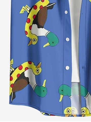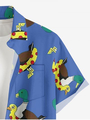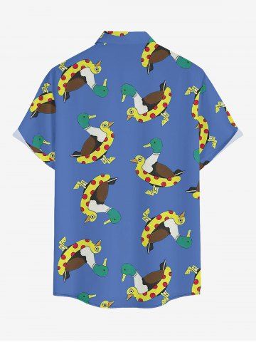 Plus Size Duck Swimming Ring Print Hawaii Button Pocket Shirt For Men - Bleu - Bleu