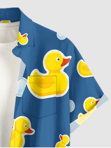 Plus Size Ducks Bubble Print Buttons Pocket Hawaii Shirt For Men - Bleu - Bleu