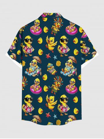 Chemise à Manches Courts> Plus Size Ducks Swimming Ring Starfish Sun Print Buttons Pocket Hawaii Shirt For Men