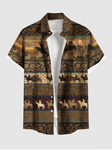 Plus Size Ethnic Horse Foral Pattern Print Buttons Pocket Hawaii Shirt For Men - Café Profond - 6xl
