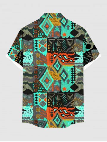 Plus Size Ethnic Pattern Print Buttons Pocket Hawaii Shirt For Men - Vert - Vert
