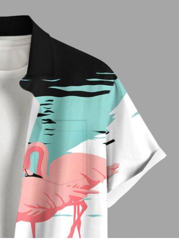 Plus Size Flamingo Lake Print Hawaii Button Pocket Shirt For Men - Blanc - Blanc