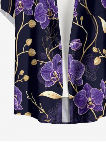Plus Size Flower Branch Print Hawaii Button Pocket Shirt For Men - Concorde - L