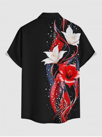 Plus Size Flower Curve Stars Print Hawaii Button Pocket Shirt For Men - Noir - Noir