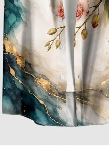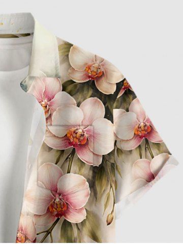 Plus Size Flower Leaf Ombre Water Ripple Print Hawaii Button Pocket Shirt For Men - Café Lumière - L