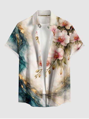 Chemise à Manches Courts> Plus Size Flower Leaf Ombre Water Ripple Print Hawaii Button Pocket Shirt For Men