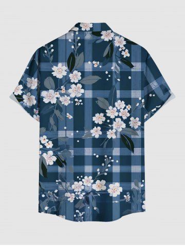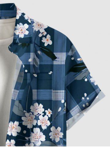 Plus Size Flower Leaf Plaid Print Hawaii Button Pocket Shirt For Men - Bleu - Bleu