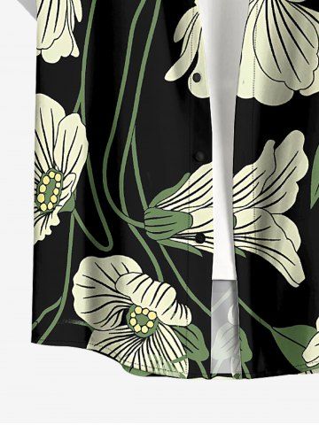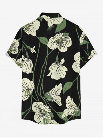 Plus Size Flower Leaf Print Buttons Pocket Hawaii Shirt For Men - Noir - Noir