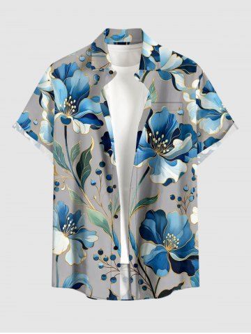 Plus Size Flower Leaf Print Buttons Pocket Hawaii Shirt For Men - Gris Foncé - Gris Foncé